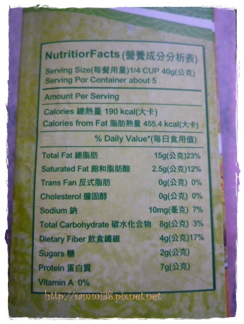 吔~ 外盒上的營養成份分析表和單包上的不太一樣吔..