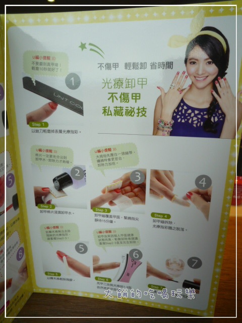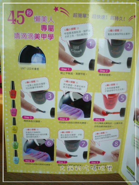 對於凝膠指甲 大餅好陌生 還好桌上有教學 Step by step 看一遍就會了 超簡單的啊!!