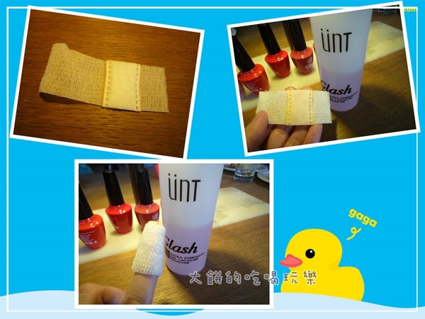 獨特自黏有彈性的繃帶 只要把卸甲液倒入卸甲繃上的棉片