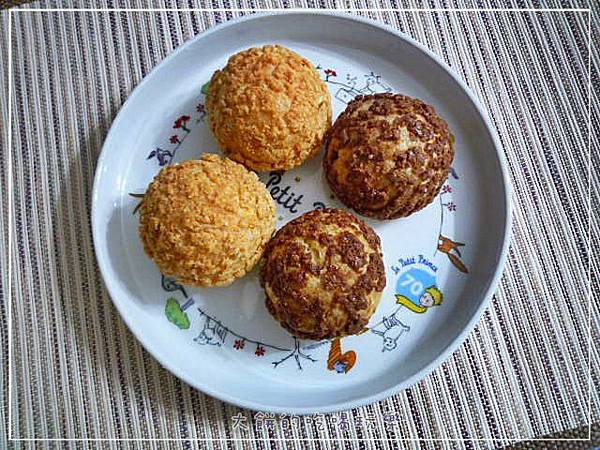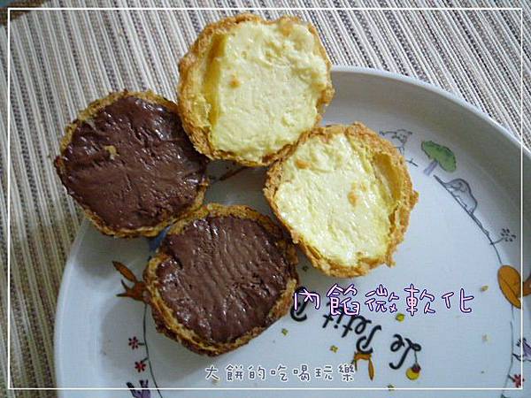上蓋部份 交換口味 蓋上 這樣雙重口味享受 同時能吃到原味和巧克力口味的泡芙