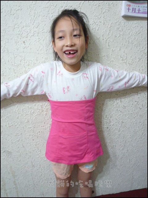 肚圍內側印有LOGO 和尺寸 我選了XL >"< 所以女兒套上後是很鬆的