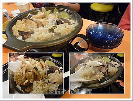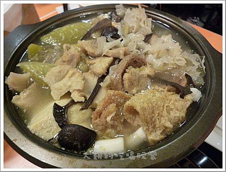 再加上大量的菌菇熬煮 湯喝起來很甘甜 不會像客家菜的酸菜湯那樣的重酸菜味