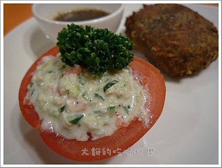 特調的沙拉裝盛在蕃茄中 清爽不膩口 開胃好菜
