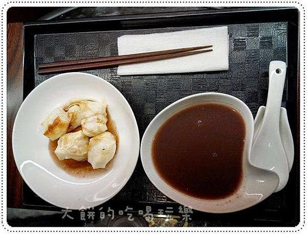 原本是配熱紅豆湯的日式烤麻糬 老闆說天氣很熱 幫我們換成涼的紅豆湯