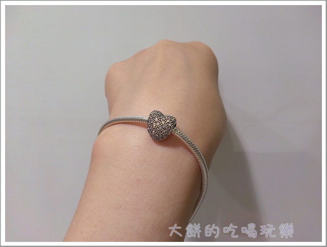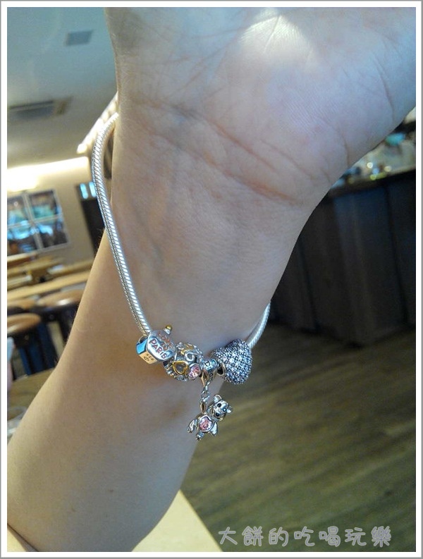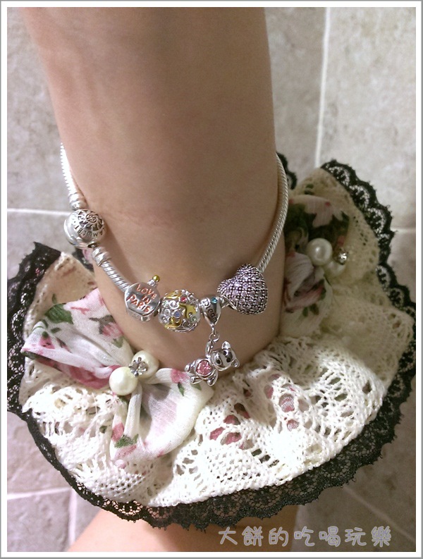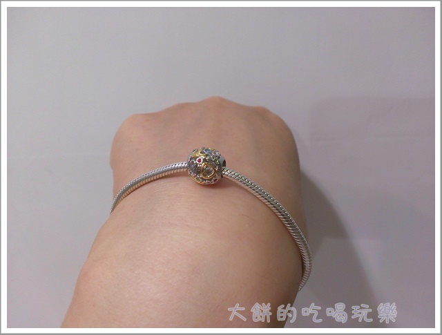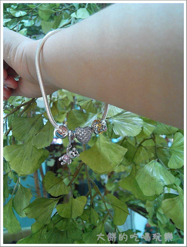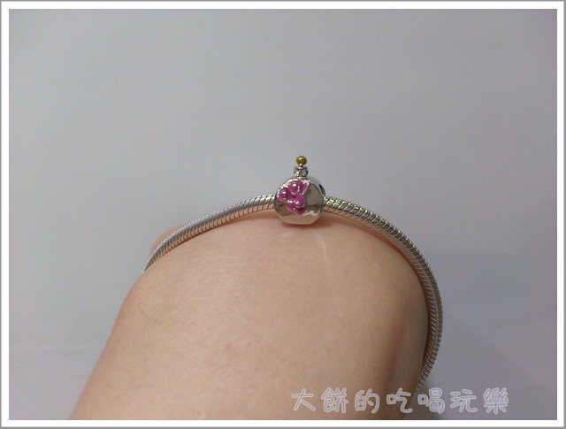 當開始挑選charm時,就想著要把它串滿,所以挑選手鏈尺寸時,考慮了串上多顆charms後手鏈會變緊,所以就選了建議尺寸更大一公分的手鏈,當只串四顆charms時,手鏈是大滿多的,不過我本來也喜歡戴比較鬆一點的,所以這樣的尺寸對我來說是還挺ok的。