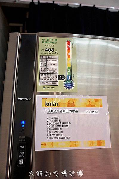 歌林560公升變頻三門冰箱 KR-356VB01 雖是大容量的冰箱,節能指標是一級,想必相當省電。