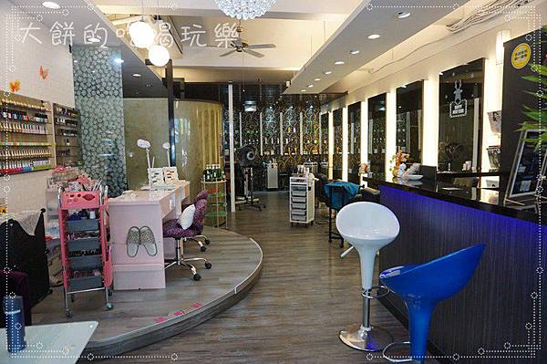 進來後一邊是美髮區,一邊是美甲美睫區,櫃枱前的高腳椅,又讓我有來到bar 的錯覺(到底是有多想吃喝啊>"<)