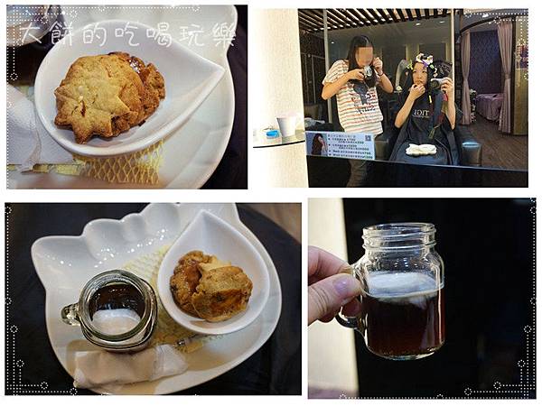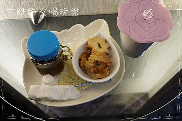 盛將點心的食器也挺用心的,kitty的盤子,目前很夯的罐型杯,微甜的手工餅乾還真好吃,濃濃咖啡香的咖啡凍也很讚,女兒吃到欲罷不能,很想要續盤(喂~不是來吃下午茶的啦XDDD)