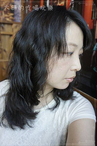 忘了說,這次瀏海也燙了個捲度,所以不會有剛剪完的呆樣,微捲的瀏海更佳好整理,中型的卷度,髮絲看起來多點温柔感~捲度從髮中段就開始有,所以澎鬆很夠,讓原本很服貼頭皮的頭髮也有澎度,臉也看起來不會這麼大了,修飾臉型效果很不錯呢,感覺應該來補燙個髮根應該會更不錯唷~!