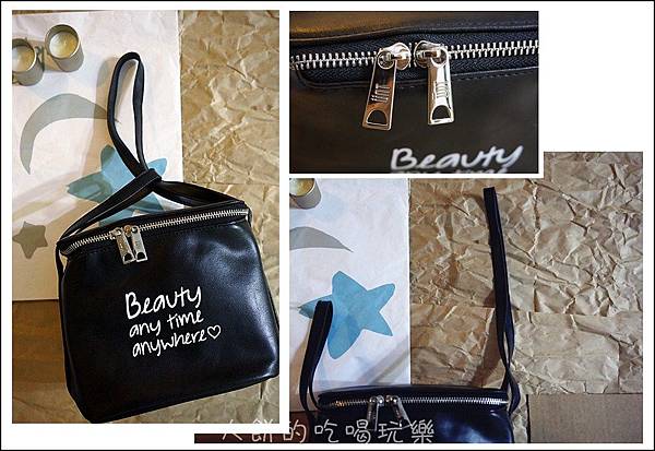 這組嬌滴滴超值專業組的設計很貼心呢,黑色軟皮提袋,質感滿不錯的容量也不小,有沒有看到提把一長一短呢,這可不是瑕疵品,這可是UNT設計這提包時的小巧思,短提把套入長提把中,就可輕鬆提著走,就像袋上的slogan~"Beauty any time anywhere