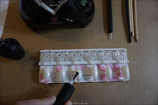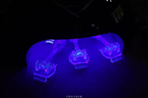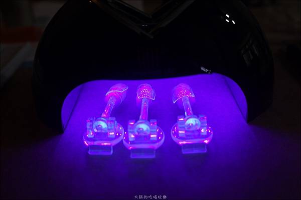 不論是擦單色的光撩指彩或是彩繪,只要每擦一層就要照LED燈一次,使其固化即可。