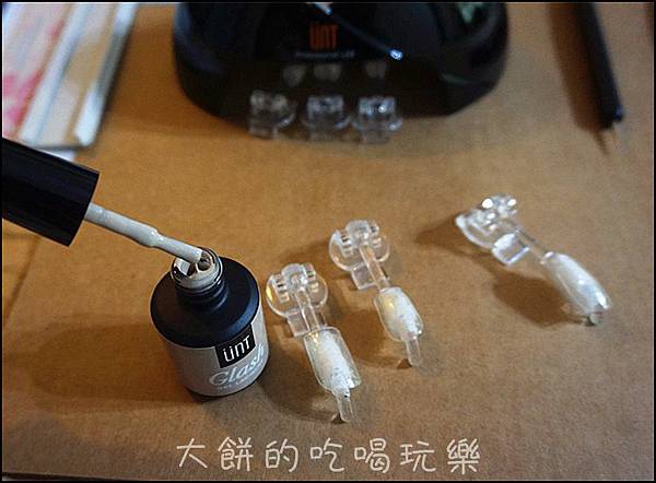 另外還有個手殘女的小福音,就是在刷光撩指彩第一層時,若沒刷勻也沒關係,因為刷第二層時就可以把不勻的甲面給填平,只要記住一大重點,千萬要薄刷,這樣照完LED燈才能完全固化,也才能在甲面上停留較久的時間。