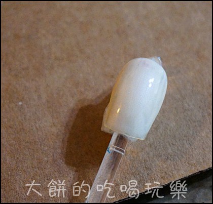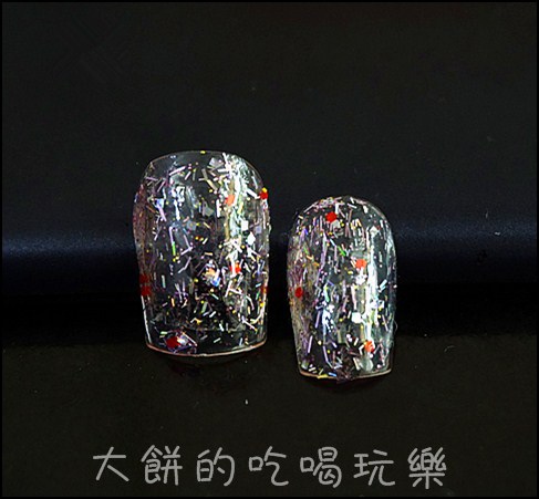像我這片甲片,因拍照時間拉長關係,甲彩塗的也有點多所以有在甲片二側堆填光撩凝膠,還好還沒照LED燈,只要把多餘的凝膠抹去,再照LED燈就可以囉。