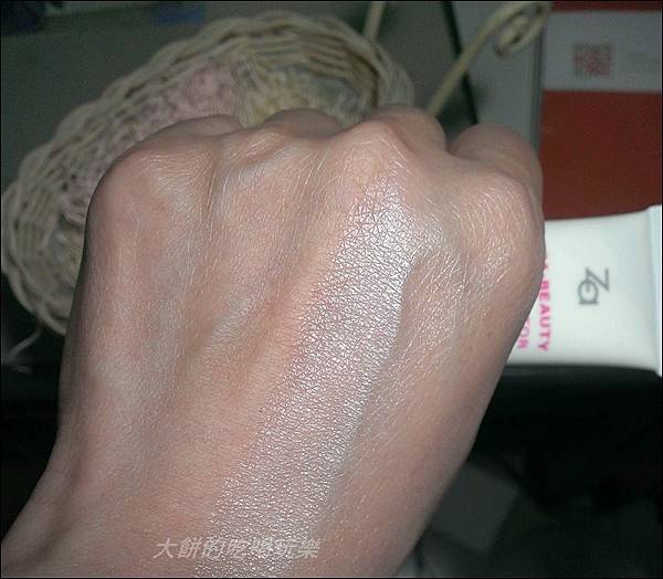 雖是白色乳狀的Za秒亮美顏防曬霜,其中的瞬間美顏科技,可以修飾毛孔,提亮膚色,給予肌膚自然潤色效果。